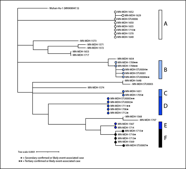 Description:During August 7-16, 2020, a motorcycle rally was held in western South Dakota that attracted approximately 460,000 persons from across the United States to numerous indoor and outdoor events over a 10-day period. During August-September 2020, the Minnesota Department of Health (MDH) investigated a coronaVirus disease 2019 (COVID-19) outbreak associated with the rally in Minnesota residents. Fifty-one primary event-associated cases were identified, and 35 secondary or tertiary cases occurred among household, social, and workplace contacts, for a total of 86 cases; four patients were hospitalized, and one died. Approximately one third (34%) of 87 counties in Minnesota had at least one primary, secondary, or tertiary case associated with this rally. Genomic sequencing supported the associations with the motorcycle rally. These findings support current recommendations for mask use, physical distancing, reducing the number of attendees at gatherings, isolation for patients with COVID-19, and quarantine for close contacts to slow the spread of SARS-CoV-2 (1). Furthermore, although these findings did not capture the impact of the motorcycle rally on residents of other states, they demonstrate the rationale for consistent mitigation measures across states.