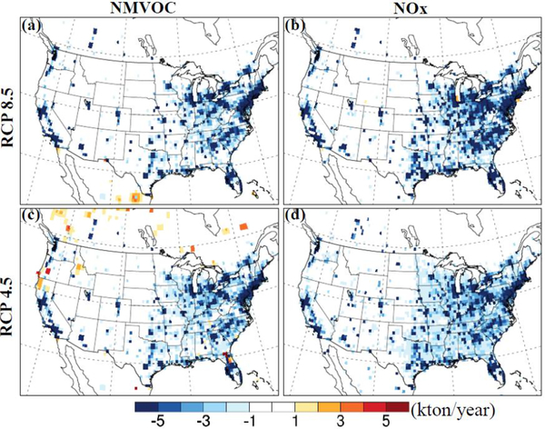 The impact of emission and climate change on ozone in the United States under representative concentration pathways (RCPs)