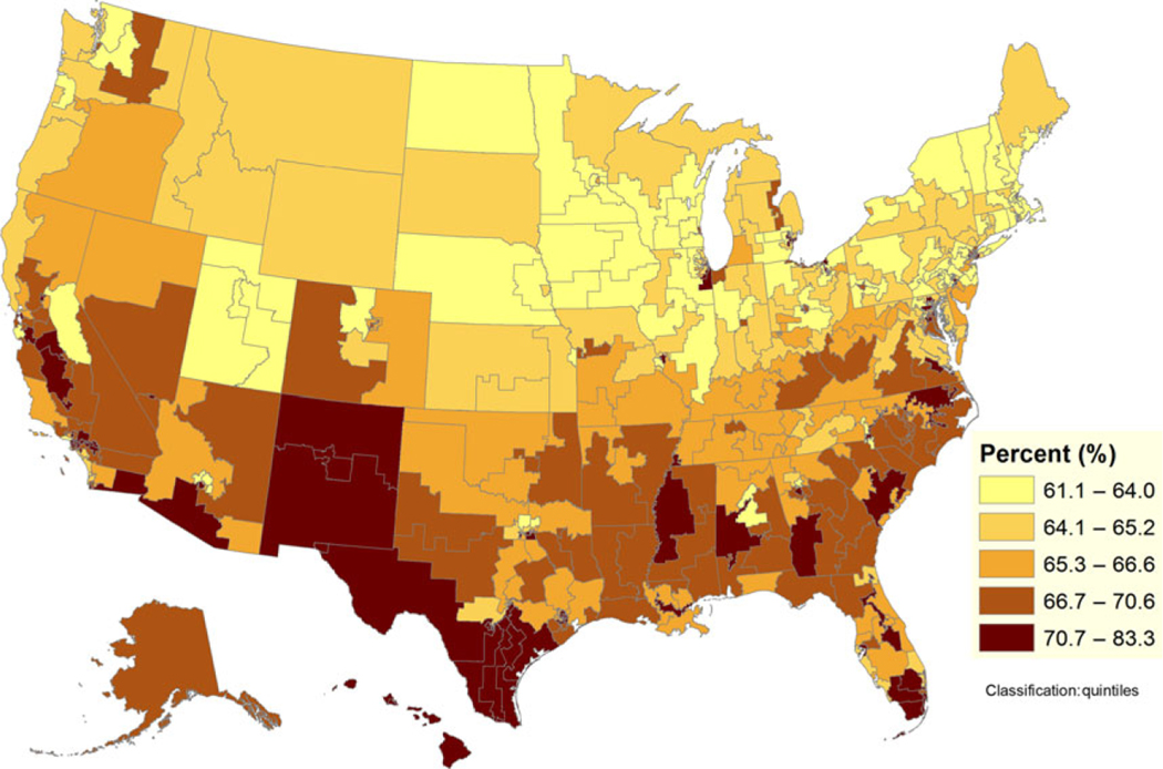 Periodontitis prevalence in adults ≥ 65 years of age, in the USA
