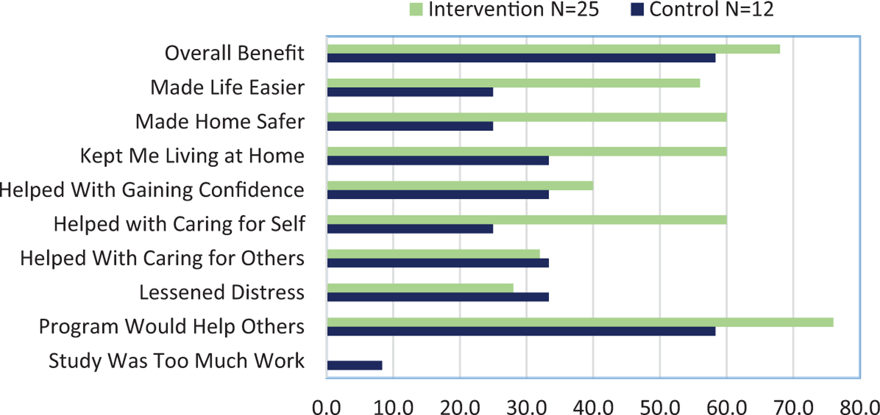 Sample (N = 37) was 65% female, 65% White, and average 77 years. Compared with the control group, each outcome improved in the intervention. The LIVE-LiFE intervention had a large effect (1.1) for tandem stand, moderate (0.5) in falls efficacy, and small (0.1) in the TUG.