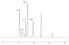 Description:A single-laboratory validation study was conducted on an HPLC method for the detection and quantification of cyanidin-3-O-galactoside (C3Ga), cyanidin-3-O-glucoside (C3GI), cyanidin-3-O-arabinoside (C3Ar), peonidin-3-O-galactoside (P3Ga), and peonidin-3-O-arabinoside (P3Ar) in cranberry fruit (Vaccinium macrocarpon Aiton) raw material and finished products. An extraction procedure using a combination of sonication and shaking with acidified methanol was optimized for all five anthocyanins in freeze-dried cranberry fruit and finished products (commercial extract powder, juice, and juice cocktail). Final extract solutions were analyzed by HPLC using a C18 RP column. Calibration curves for all anthocyanin concentrations had correlation coefficients (r2) of > or = 99.8%. The method detection limits for C3Ga, C3Gl, C3Ar, P3Ga, and P3Ar were estimated to be 0.018, 0.016, 0.006, 0.013, and 0.011 microg/mL, respectively. Separation was achieved with a chromatographic run time of 35 min using a binary mobile phase with gradient elution. Quantitative determination performed in triplicate on four test materials on each of 3 days (n = 12) resulted in RSD(r) from 1.77 to 3.31%. Analytical range, as defined by the calibration curves, was 0.57-36.53 microg/mL for C3Ga, 0.15-9.83 microg/mL for C3GI, 0.28-17.67 microg/mL for C3Ar, 1.01-64.71 microg/mL for P3Ga, and 0.42-27.14 microg/mL for P3Ar. For solid materials prepared by the described method, this translates to 0.06-3.65 mglg for C3Ga, 0.02-0.98 mg/g for C3Gl, 0.03-1.77 mg/g for C3Ar, 0.10-6.47 mg/g for P3Ga, and 0.04-2.71 mg/g for P3Ar.