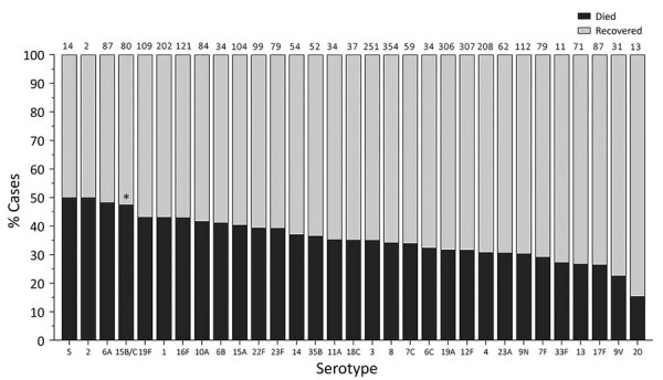 Streptococcus pneumoniae Serotypes Associated with Death, South Africa, 2012–2018