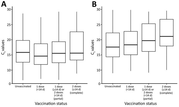 Description:We developed a case-case study to compare mRNA vaccine effectiveness against Delta versus Alpha coronavirus variants. We used data on 2,097 case-patients with PCR-positive severe acute respiratory syndrome coronavirus 2 infections reported in Portugal during May-July 2021. We estimated the odds of vaccine breakthrough infection in Delta-infected versus Alpha-infected patients by using conditional logistic regression adjusted for age group and sex and matched by the week of diagnosis. We compared reverse-transcription PCR cycle threshold values by vaccination status and variant as an indirect measure of viral load. We found significantly higher odds of vaccine breakthrough infection in Delta-infected patients than in Alpha-infected patients (odds ratio 1.96 [95% CI 1.22-3.14]), suggesting lower effectiveness of the mRNA vaccines in preventing infection with the Delta variant. We estimated lower mean cycle threshold values for the Delta cases (mean difference -2.10 [95% CI -2.74 to -1.47]), suggesting higher infectiousness than the Alpha variant.