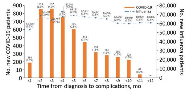 Comparison of Complications after Coronavirus Disease and Seasonal Influenza, South Korea
