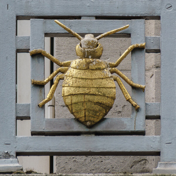 Gilded Vectors of Disease, 1912. Gilded bronze and iron railings. 10.2 in x 10.6 in/26 cm x 27 cm. Images courtesy of Library & Archives Service, London School of Hygiene & Tropical Medicine, London, United Kingdom.