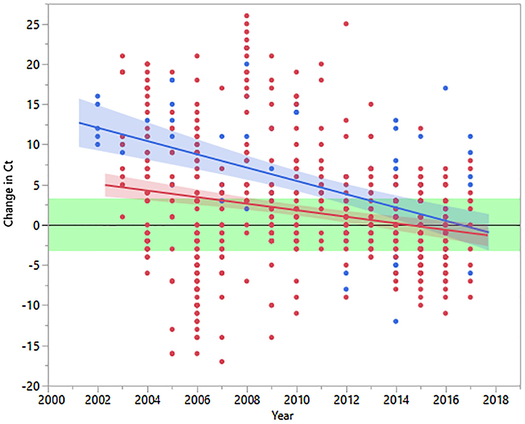 Description:Noroviruses are recognized as the leading cause of acute gastroenteritis globally. With improved molecular diagnostics developed over the last two decades, archived clinical specimens are increasingly used to investigate the historic prevalence and molecular epidemiology of human norovirus. Yet the impact of long-term storage on viral integrity in clinical specimens has not been evaluated. In this study, we retested 994 stool specimens collected between 1996 and 2017 that originally tested norovirus-positive to quantify the loss of norovirus RT-PCR positivity with increasing sample storage time at 4 °C. In all, 79% of samples tested positive after retesting, but there was an approximate 3% decline in the positivity ratio and 4% decline in the percentage of samples that could be genotyped with each additional year of sample storage. For samples that were originally quantified by real-time RT-PCR (collected between 2003 and 2017), there was an estimated 1-log loss of viral titer occurring every 7 years of sample storage. Few samples contained PCR inhibitors, assessed using a MS2 extraction control, indicating that loss of RT-PCR signal was due primarily to loss of viral RNA integrity after long-term storage of stool samples at 4 °C. Our results indicate that norovirus positive stool samples can be stored with minimal loss in RT-PCR positivity when stored less than a decade. Longer periods of storage may impair norovirus detection, potentially impacting historic estimates of norovirus prevalence and molecular epidemiology if derived by testing archival clinical specimens.