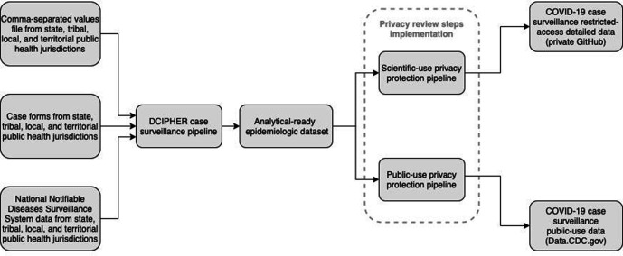Results: Unrestricted data are available to the public through Data.CDC.gov, and restricted data, with additional fields, are available with a data-use agreement through a private repository on GitHub.com.