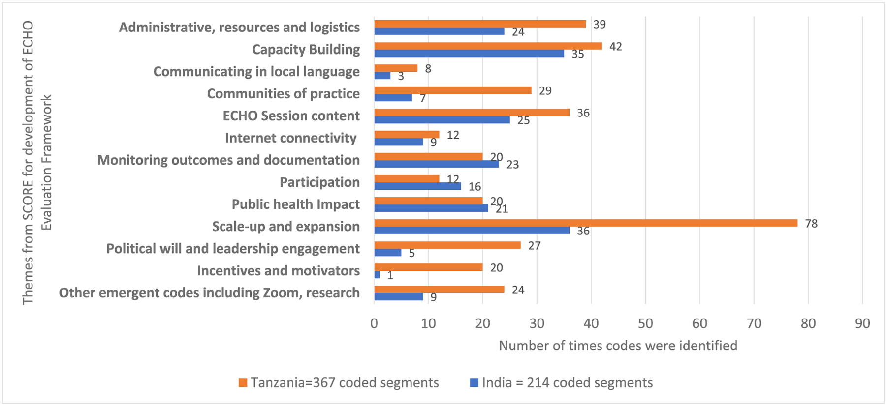 Description:Persistent gaps exist in healthcare workers' capacity to address HIV and tuberculosis in Asia and Africa due to constraints in resources and knowledge. Project ECHO (Extension for Community Healthcare Outcomes) leverages video-enabled technology to build workforce capacity and promote collaboration through mentorship and case-based learning. To understand current perceptions of ECHO participants and develop a comprehensive evaluation framework for ECHO implementation, we utilized modified appreciative inquiry guided focus group discussions (FGD) in India and Tanzania and called it SCORE (Strengths, Challenges, Opportunities, Results, and Evaluation). Content and thematic analysis of transcripts from FGDs and key-informant interviews triangulated perceptions of diverse stakeholders about ECHO implementation and identified key elements for development of the framework. The perceived strengths (S) were capacity building and establishing communities of practice. The perceived challenges (C) included securing resources, engaging leadership, and building systems for monitoring impact. Improved internet connectivity, addressing logistical challenges, encouraging session interactivity, and having strategic scale-up plans were perceived opportunities (O). Additionally, gathering measurable results (R) led to development of a comprehensive evaluation (E) framework. Contextualizing and facilitating SCORE with qualitative analysis of findings 6-12 months post-ECHO implementation may serve as a best practice to assess mid-course corrections to improve ECHO implementation quality.