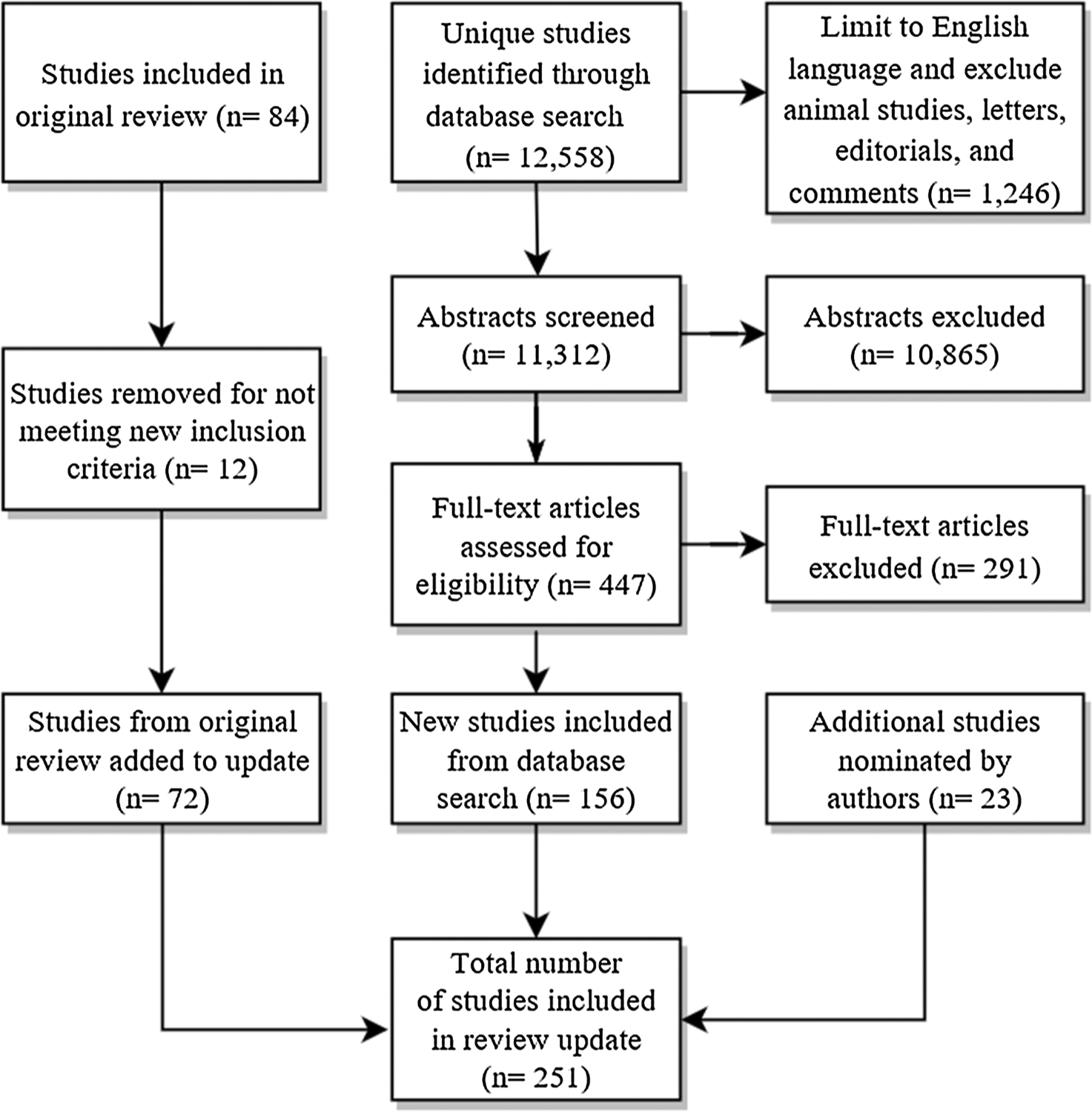 The quality of evidence supporting selected interventions was low to moderate. Interventions with the strongest evidence include PDMP and pain clinic legislation, insurance strategies, motivational interviewing in clinical settings, feedback to providers on opioid prescribing behavior, intensive school and family-based programs, and patient education in the clinical setting.