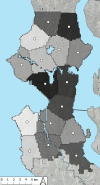 We developed and validated an in-store survey tool and surveyed 134 stores. We measured availability and prices of 19 items. For each store, we calculated a healthy food availability score (range, 0–25), and mean prices within each category. Using census tract data, we identified the median household income and proportions of Black and Hispanic residents for each store’s neighborhood and grouped them by tertiles of these neighborhood characteristics across Seattle census tracts. We used Wald tests to compare mean availability scores and prices between tertiles and applied postestimation weights to reflect store-type distributions within each tertile.