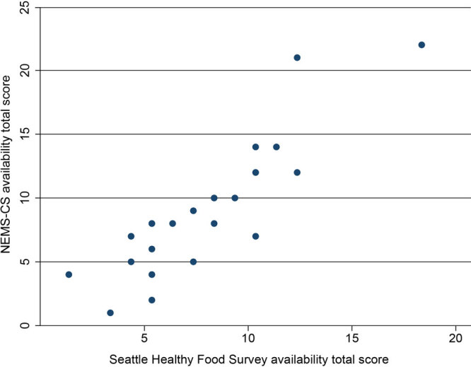 We found systematic differences in healthy food availability based on neighborhood-level income and racial composition. In-store assessments of the food retail environment can inform local, tailored strategies to improve healthy food access.
