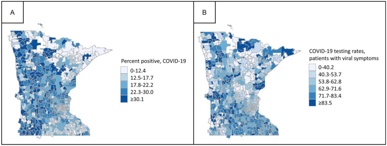 In this serial cross-sectional study, we examined patients of all ages who received a COVID-19 polymerase chain reaction test, had symptoms of a viral illness, or received an influenza test from January 3, 2016, through November 7, 2020. We evaluated COVID-19 testing rates among patients with symptoms of viral illness and percentage positivity among all patients tested, in aggregate and by zip code. We stratified results by patient and area-level characteristics.