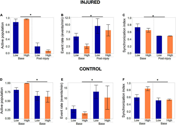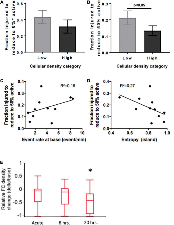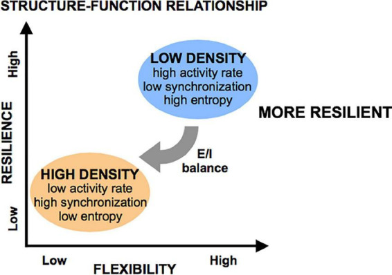 We found cellular density, but not island size, regulates of circuit activity and network function in this system. Low cellular density islands can achieve many states of activity, while high cellular density biases islands towards a limited regime characterized by low rates of activity and high synchronization, a property we summarized as “flexibility.” The injury severity required for an island to lose activity in 50% of its population was significantly higher in low-density, high flexibility islands.