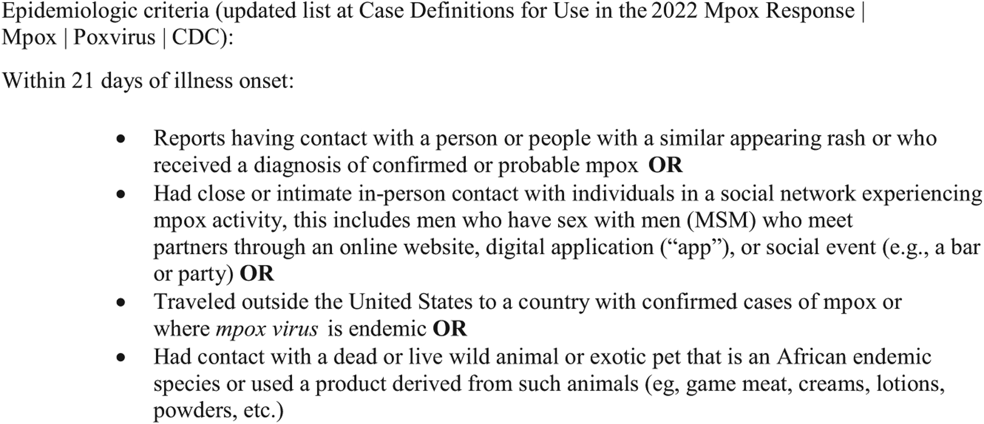 Description:Although mpox is rare among children in the United States, pediatric cases are being reported during the 2022 multinational mpox outbreak. Vaccines and antiviral medications developed for other orthopoxviruses have recently become widely used to prevent and treat mpox in both children and adults in the United States. Although scientific literature regarding mpox in children and adolescents is scant, prior case reports can provide valuable information about the clinical features and potential complications of untreated clade II mpox in these age groups. In this review, we summarize the epidemiology and clinical features of mpox in children and adolescents and provide recommendations for clinicians regarding its diagnosis, management, and prevention. Robust, dedicated surveillance of pediatric exposures and cases in the current outbreak, including the use of vaccines and therapeutics, are needed to guide clinical management and public health strategies.