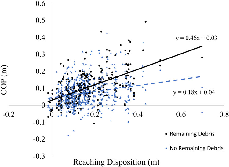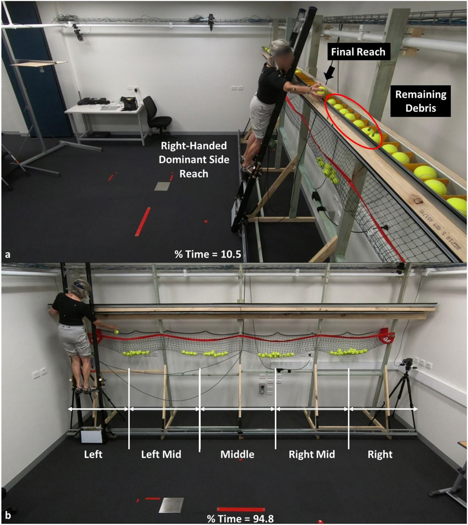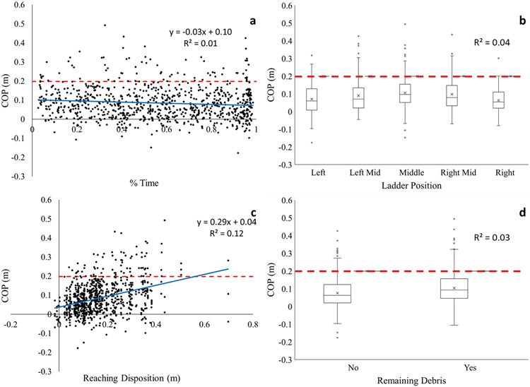 Description:Ladder falls from overreaching are a problem in older adults. Evidence suggests ladder use behavior to be dependent on interfacing user and environmental circumstances (i.e. situational factors). This study investigates the effects of situational factors (remaining debris, ladder position, time into task, hand dominant reach, reaching disposition) on reaching during a gutter clearing task on a ladder in 104 older adults. Reaching was quantified as the maximum lateral center of pressure (COP) displacement from the ladder's center. A reach was classified as an overreach when the COP displaced outside the ladder width, indicative of a ladder tip. Reaching disposition, remaining debris, ladder position, and the interaction of reaching disposition and remaining debris predicted 20% of the reaching variability during the ladder task. Overreaching was observed in 40% of participants accounting for 13% of all extended reaches (beyond ladder). This work can guide interventions on mitigating overreaching and improving ladder safety.