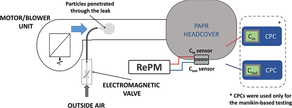 Description:Powered air-purifying respirators (PAPRs) that offer protection from particulates are deployed in different workplace environments. Usage of PAPRs by healthcare workers is rapidly increasing; these respirators are often considered the best option in healthcare settings, particularly during public health emergency situations, such as outbreaks of pandemic diseases. At the same time, lack of user training and certain vigorous work activities may lead to a decrease in a respirator's performance. There is a critical need for real-time performance monitoring of respiratory protective devices, including PAPRs. In this effort, a new robust and low-cost real-time performance monitor (RePM) capable of evaluating the protection offered by a PAPR against aerosol particles at a workplace was developed. The new device was evaluated on a manikin and on human subjects against a pair of condensation nuclei counters (P-Trak) used as the reference protection measurement system. The outcome was expressed as a manikin-based protection factor (mPF) and a Simulated Workplace Protection Factor (SWPF) determined while testing on subjects. For the manikin-based testing, the data points collected by the two methods were plotted against each other; a near-perfect correlation was observed with a correlation coefficient of 0.997. This high correlation is particularly remarkable since RePM and condensation particle counter (CPC) measure in different particle size ranges. The data variability increased with increasing mPF. The evaluation on human subjects demonstrated that RePM prototype provided an excellent Sensitivity (96.3% measured on human subjects at a response time of 60 sec) and a Specificity of 100%. The device is believed to be the first of its kind to quantitatively monitor PAPR performance while the wearer is working; it is small, lightweight, and does not interfere with job functions.