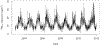 Description:In order to examine associations between asthma morbidity and local ambient air pollution in an area with relatively low levels of pollution, we conducted a time-series analysis of asthma hospital admissions and fine particulate matter pollution (PM|) in and around Jackson, MS, for the period 2003 to 2011. Daily patient-level records were obtained from the Mississippi State Department of Health (MSDH) Asthma Surveillance System. Patient geolocations were aggregated into a grid with 0.1° × 0.1° resolution within the Jackson Metropolitan Statistical Area. Daily PM| concentrations were estimated via machine-learning algorithms with remotely sensed aerosol optical depth and other associated parameters as inputs. Controlling for long-term temporal trends and meteorology, we estimated a 7.2% (95% confidence interval 1.7-13.1%) increase in daily all-age asthma emergency room admissions per 10 μg/m| increase in the 3-day average of PM| levels (current day and two prior days). Stratified analyses reveal significant associations between asthma and 3-day average PM| for males and blacks. Our results contribute to the current epidemiologic evidence on the association between acute ambient air pollution exposure and asthma morbidity, even in an area characterized by relatively good air quality.