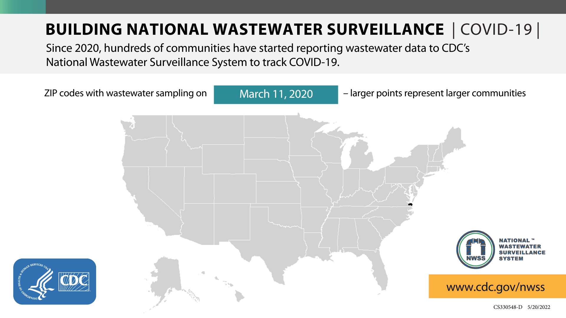 Description:Sincew 2020, hundreds of communities have started reporting wastewater data to CDC's ational Wastewater Surveillance System to track COVID-19.
