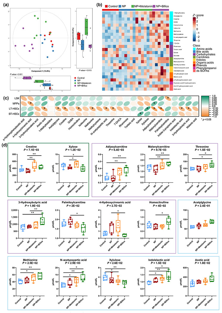 Melatonin and probiotics ameliorate nanoplastics-induced hematopoietic injury by modulating the gut microbiota-metabolism