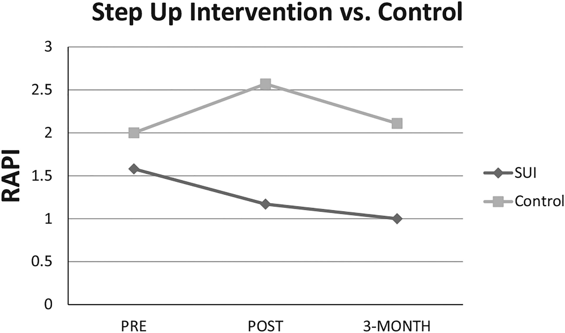 Thirty-three percent (n = 18) of adolescents were classified as light/moderate drinkers, and 67% (n = 36) were abstinent/infrequent drinkers based on their lifetime drinking histories. Results revealed a significant decrease in self-reported alcohol risk and in alcohol-related negative behaviors (Cohen’s d = 1.08 and 0.99) in light/moderate drinkers in the SUI compared to the Control group. These results were partially sustained at 3-month follow-up. Furthermore, adolescents in the abstinent/infrequent group exhibited no increase in alcohol-related outcomes suggesting that the group intervention used in this study was not iatrogenic.