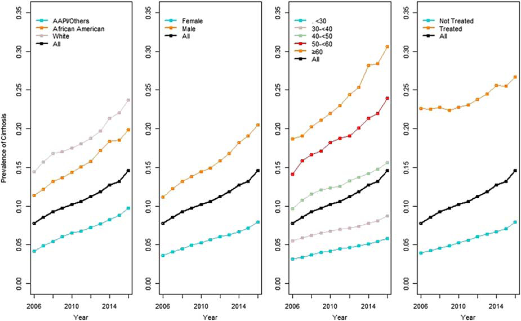 Trends in Cirrhosis and Mortality by Age, Sex, Race, and Antiviral Treatment Status Among US Chronic Hepatitis B Patients (2006–2016)