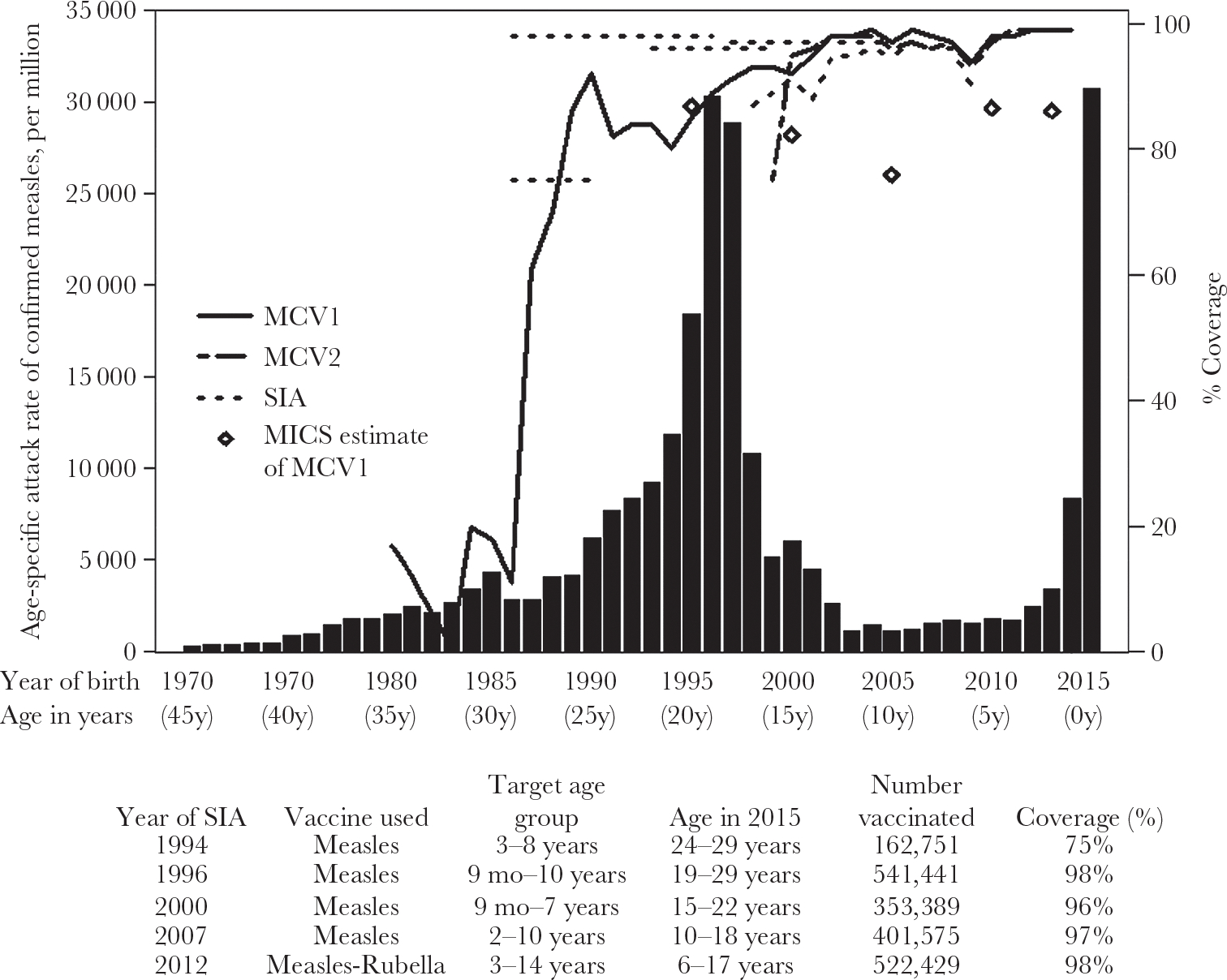 In 2015, a large nationwide measles outbreak occurred in Mongolia, with very high incidence in the capital city of Ulaanbaatar and among young adults.