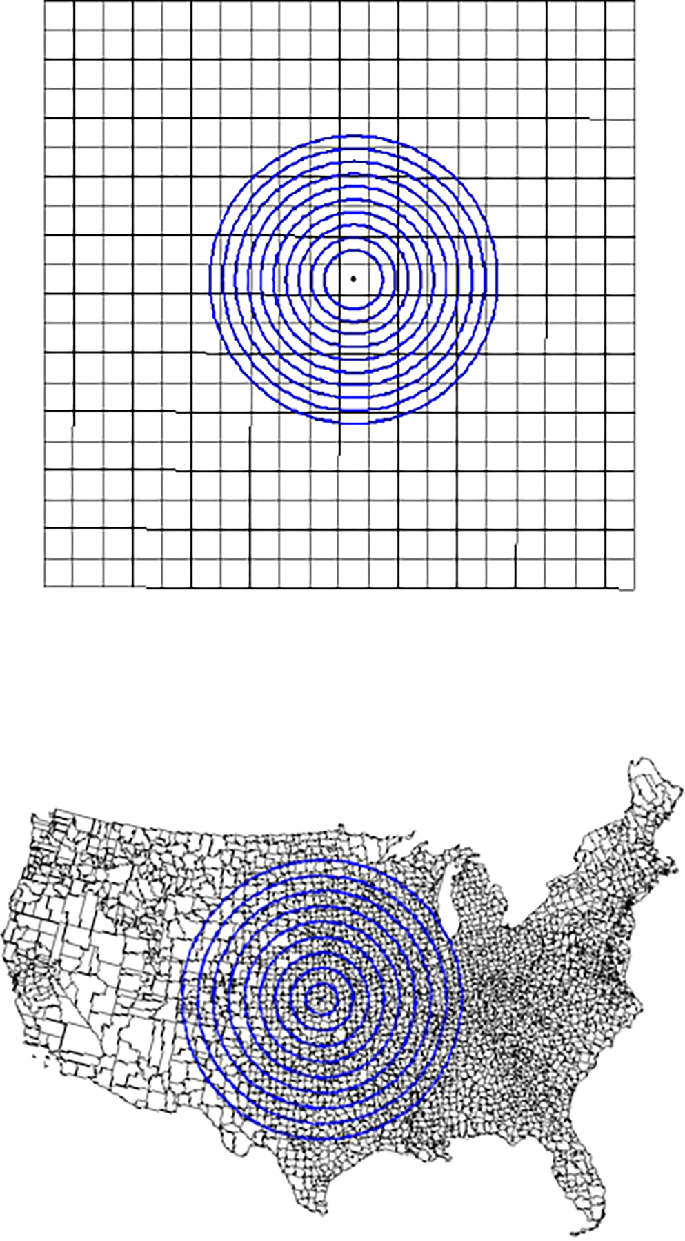 Description:Spatial clustering detection has a variety of applications in diverse fields, including identifying infectious disease outbreaks, pinpointing crime hotspots, and identifying clusters of neurons in brain imaging applications. Ripley's K-function is a popular method for detecting clustering (or dispersion) in point process data at specific distances. Ripley's K-function measures the expected number of points within a given distance of any observed point. Clustering can be assessed by comparing the observed value of Ripley's K-function to the expected value under complete spatial randomness. While performing spatial clustering analysis on point process data is common, applications to areal data commonly arise and need to be accurately assessed. Inspired by Ripley's K-function, we develop the | and use it to develop a hypothesis testing procedure for the detection of spatial clustering and dispersion at specific distances in areal data. We compare the performance of the proposed PAPF hypothesis test to that of the global Moran's I statistic, the Getis-Ord general G statistic, and the spatial scan statistic with extensive simulation studies. We then evaluate the real-world performance of our method by using it to detect spatial clustering in land parcels containing conservation easements and US counties with high pediatric overweight/obesity rates.