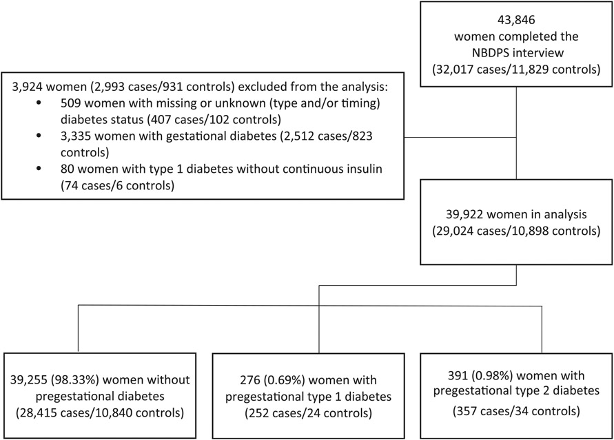 Risk of birth defects by pregestational type 1 or type 2 diabetes: National Birth Defects Prevention Study, 1997–2011