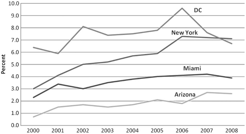 Description:: Persons living with HIV/AIDS who acquire new sexually transmitted diseases (STDs) pose a risk for enhanced transmission of both HIV and STDs. To describe the frequency of HIV coinfection among gonorrhea cases (GC), HIV and GC surveillance databases (2000-2008) were cross-matched in New York City (NYC), Washington, DC (DC), Miami/Dade County (MDC), and Arizona (AZ). During 2000-2008, 4.6% (9471/205,689) of reported GCs occurred among persons with previously diagnosed HIV: NYC (5.5%), DC (7.3%), MDC (4%), and AZ (2%). The overall HIV-GC coinfection rates increased over the study period in all 4 sites. Real-time data integration could allow for enhanced prevention among persons with HIV infection and acute STDs.