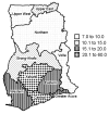 Description:A national search for cases of Buruli ulcer in Ghana identified 5,619 patients, with 6,332 clinical lesions at various stages. The overall crude national prevalence rate of active lesions was 20.7 per 100,000, but the rate was 150.8 per 100,000 in the most disease-endemic district. The case search demonstrated widespread disease and gross underreporting compared with the routine reporting system. The epidemiologic information gathered will contribute to the design of control programs for Buruli ulcer.