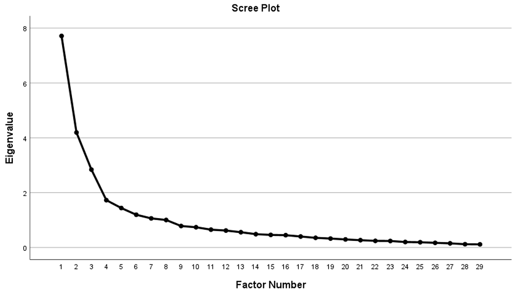 Methodological research of a quantitative cross-sectional survey design was employed. The study surveys were administered by email to a sample of 108 oncology nurses. Cronbach’s alpha, item analysis, exploratory factor analysis using principal axis factoring, and convergence validity testing were used to test reliability and validity.