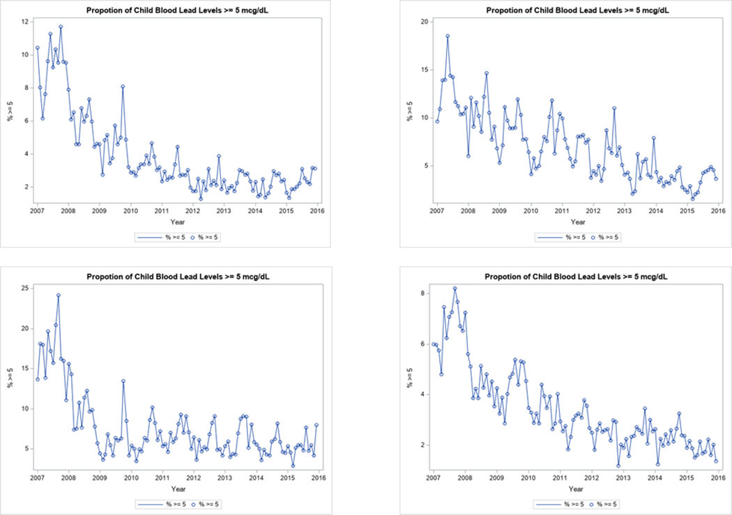 Local, state, and national childhood blood lead surveillance is based on healthcare providers and clinical laboratories reporting test results to public health departments. Increased interest in detecting blood lead level (BLL) patterns and changes of potential public health significance in a timely manner has highlighted the need for surveillance systems to rapidly detect and investigate these events.