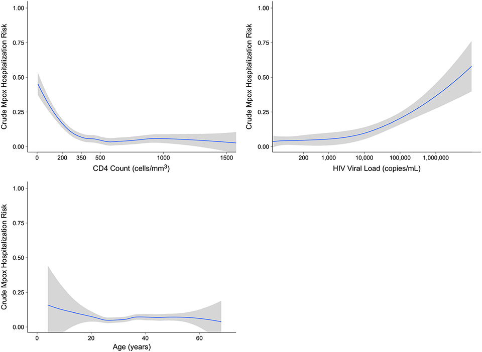 Description:Human immunodeficiency virus (HIV)-associated immunosuppression may increase the risk of hospitalization with mpox. Among persons diagnosed with mpox in the state of Georgia, we characterized the association between hospitalization with mpox and HIV status. People with HIV and a CD4 count <350 cells/mm3 or who were not engaged in HIV care had an increased risk of hospitalization.