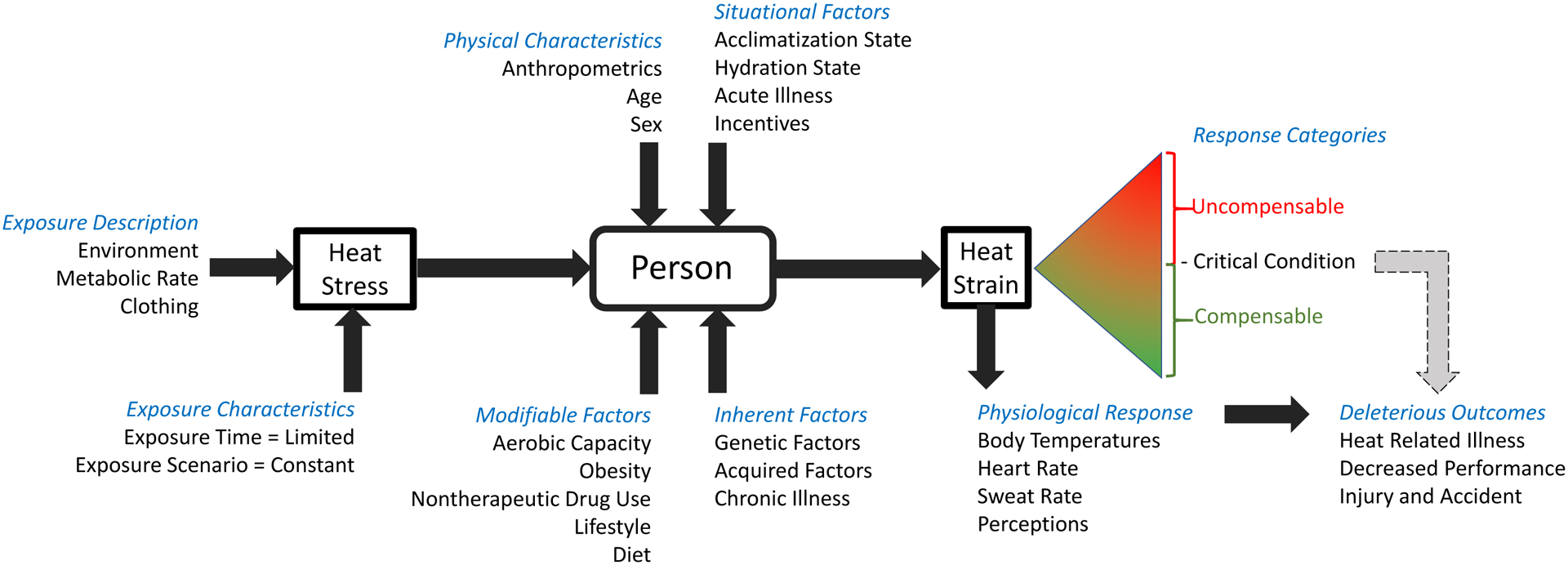 Description:Human "heat tolerance" has no accepted definition or physiological underpinnings; rather, it is almost always discussed in relative or comparative terms. We propose to use environmental limits to heat balance accounting for metabolic rate and clothing, that is, the environments for which heat stress becomes uncompensable for a specified metabolic rate and clothing, as a novel metric for quantifying heat tolerance.