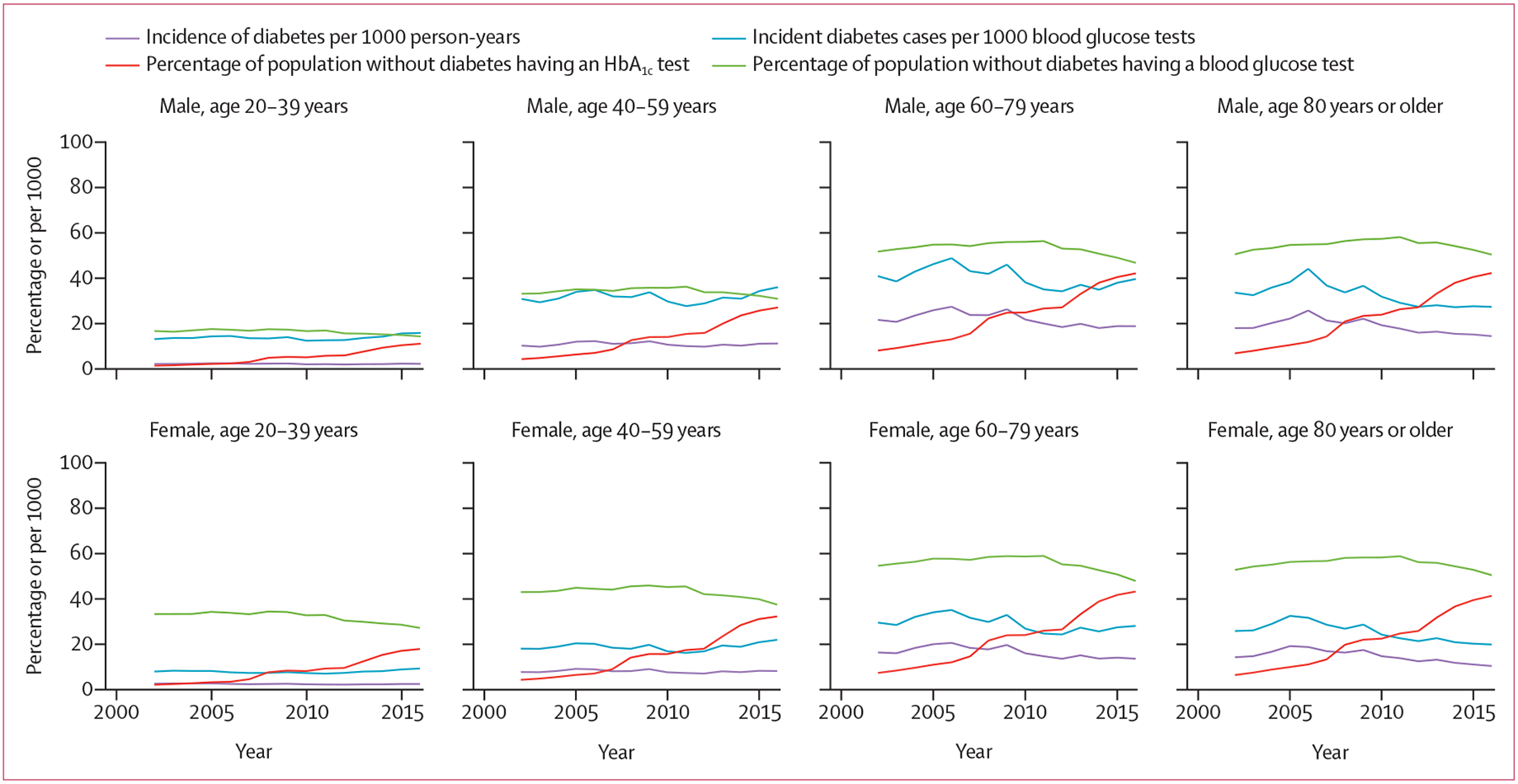Diabetes prevalence is increasing in most places in the world, but prevalence is affected by both risk of developing diabetes and survival of those with diabetes. Diabetes incidence is a better metric to understand the trends in population risk of diabetes. Using a multicountry analysis, we aimed to ascertain whether the incidence of clinically diagnosed diabetes has changed over time.