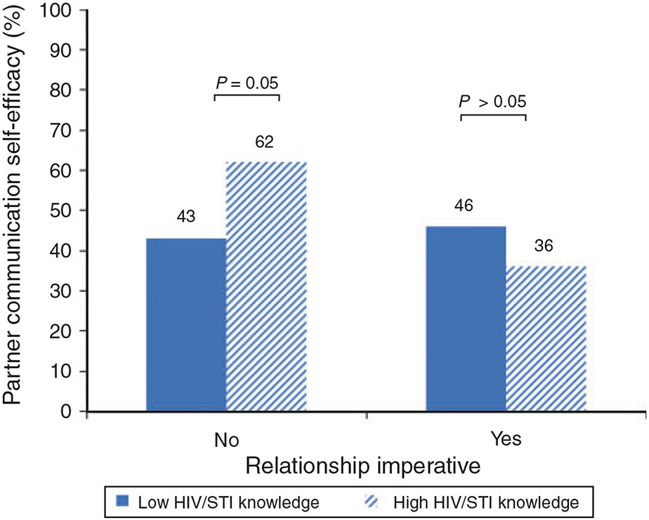When girls endorsed a relationship imperative, higher HIV/STI knowledge was associated with low partner communication self-efficacy, inconsistent condom use and unprotected sex, when controlling for demographics and self-esteem.