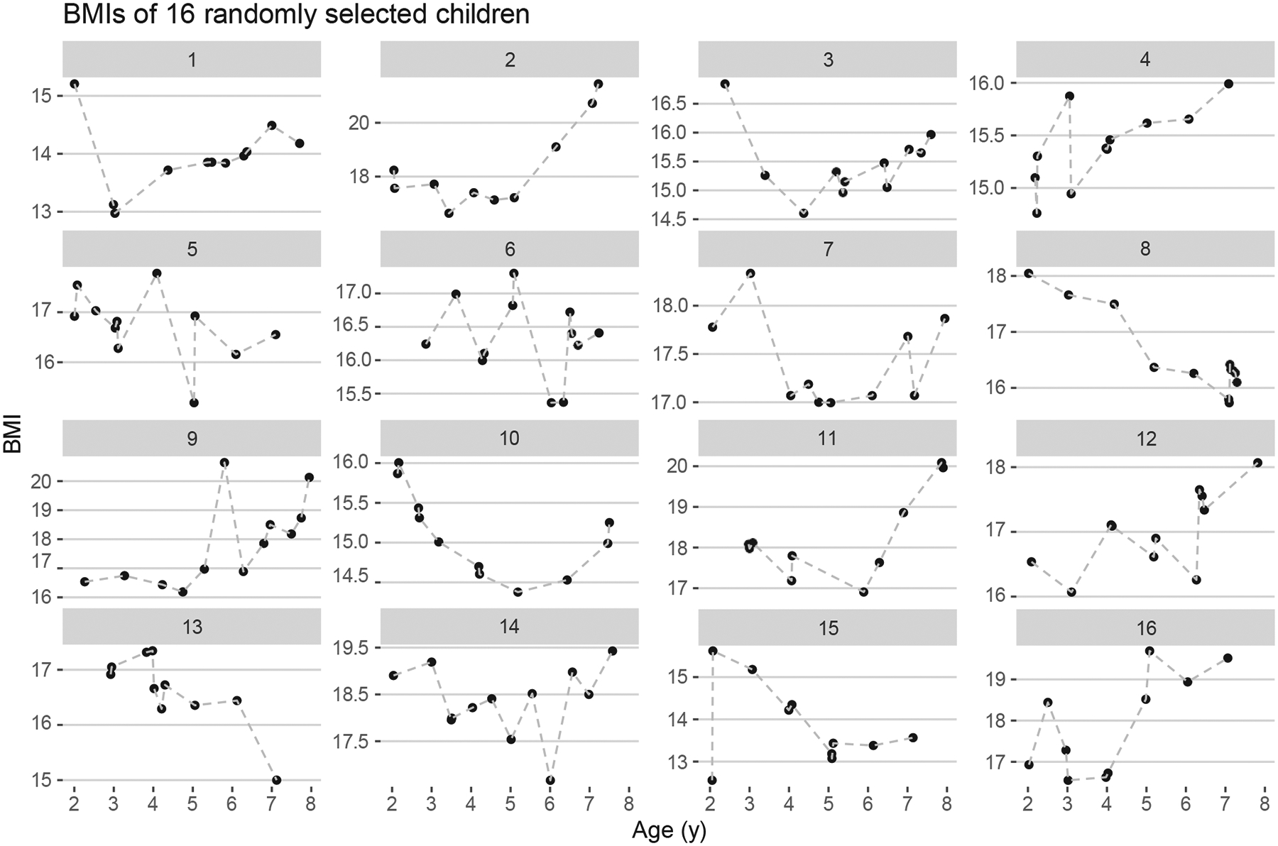 From the electronic health records of 4.35 million children, a total of 12,228 children were selected who were examined at least once each year between ages 2 and 7 years and reexamined after age 14 years. The minimum number of examinations per child was six. Each child’s rebound age was estimated using locally weighted regression (lowess), a smoothing technique.
