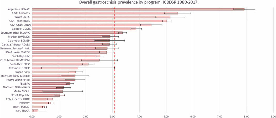 Gastroschisis prevalence patterns in 27 surveillance programs from 24 countries, International Clearinghouse for Birth Defects Surveillance and Research, 1980–2017