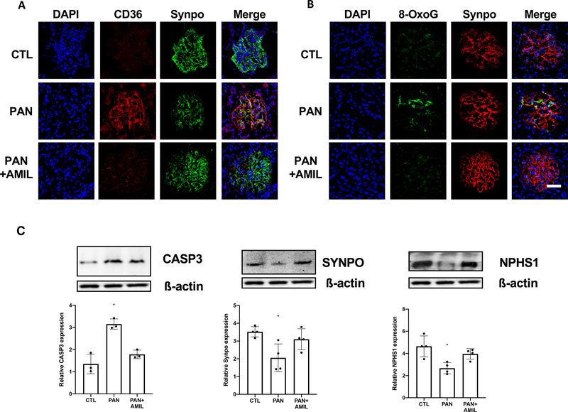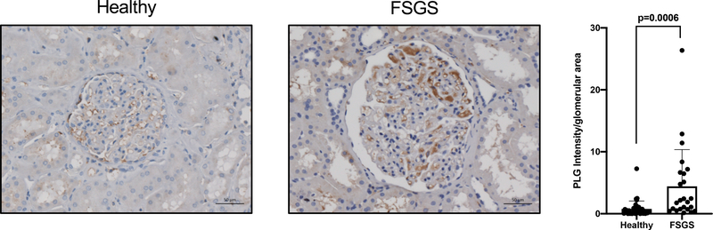 Description:Urinary plasminogen/plasmin, or plasmin (ogen) uria, has been demonstrated in proteinuric patients and exposure of cultured podocytes to plasminogen results in injury via oxidative stress pathways. A causative role for plasmin (ogen) as a "second hit" in kidney disease progression has yet to have been demonstrated in vivo. Additionally, association between plasmin (ogen) uria and kidney function in glomerular diseases remains unclear. We performed comparative studies in a puromycin aminonucleoside (PAN) nephropathy rat model treated with amiloride, an inhibitor of plasminogen activation, and measured changes in plasmin (ogen) uria. In a glomerular disease biorepository cohort (n = 128), we measured time-of-biopsy albuminuria, proteinuria, and plasmin (ogen) uria for correlations with kidney outcomes. In cultured human podocytes, plasminogen treatment was associated with decreased focal adhesion marker expression with rescue by amiloride. Increased glomerular plasmin (ogen) was found in PAN rats and focal segmental glomerulosclerosis (FSGS) patients. PAN nephropathy was associated with increases in plasmin (ogen) uria and proteinuria. Amiloride was protective against PAN-induced glomerular injury, reducing CD36 scavenger receptor expression and oxidative stress. In patients, we found associations between plasmin (ogen) uria and edema status as well as eGFR. Our study demonstrates a role for plasmin (ogen)-induced podocyte injury in the PAN nephropathy model, with amiloride having podocyte-protective properties. In one of the largest glomerular disease cohorts to study plasminogen, we validated previous findings while suggesting a potentially novel relationship between plasmin (ogen) uria and estimated glomerular filtration rate (eGFR). Together, these findings suggest a role for plasmin (ogen) in mediating glomerular injury and as a viable targetable biomarker for podocyte-sparing treatments.