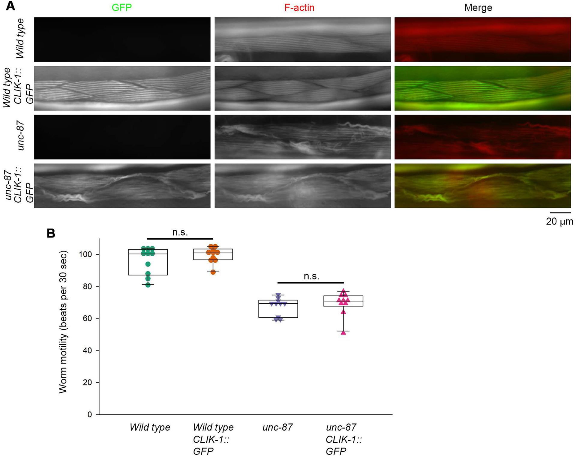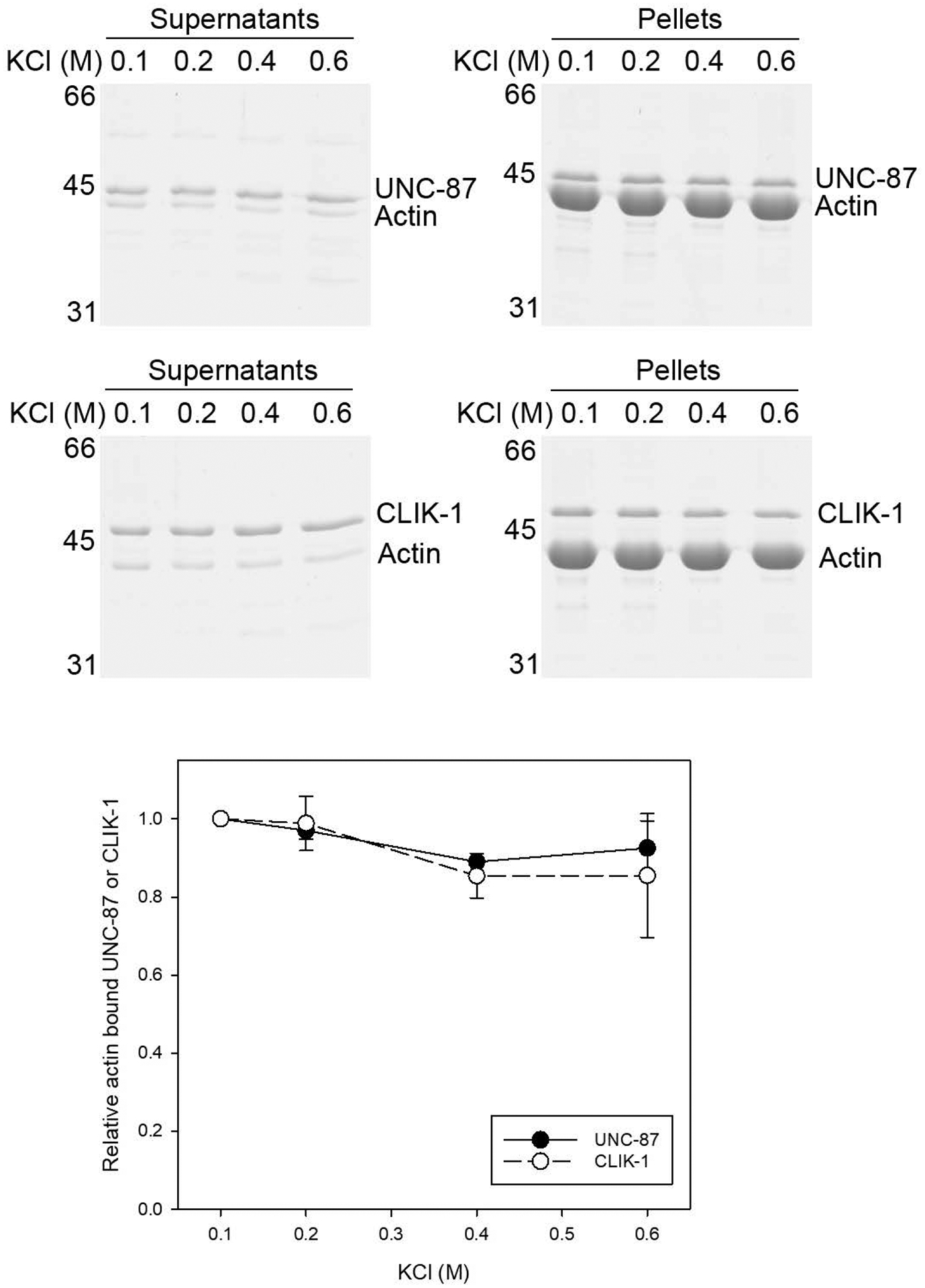 Description:The calponin family proteins are expressed in both muscle and non-muscle cells and involved in the regulation of cytoskeletal dynamics and cell contractility. In the nematode Caenorhabditis elegans, UNC-87 and CLIK-1 are calponin-related proteins with 42% identical amino acid sequences containing seven calponin-like motifs. Genetic studies demonstrated that UNC-87 and CLIK-1 have partially redundant function in regulating actin cytoskeletal organization in striated and non-striated muscle cells. However, biochemical studies showed that UNC-87 and CLIK-1 are different in their ability to bundle actin filaments. In this study, I extended comparison between UNC-87 and CLIK-1 and found additional differences in vitro and in vivo. Although UNC-87 and CLIK-1 bound to actin filaments similarly, UNC-87, but not CLIK-1, bound to myosin and inhibited actomyosin ATPase in vitro. In striated muscle, UNC-87 and CLIK-1 were segregated into different subregions within sarcomeric actin filaments. CLIK-1 was concentrated near the actin pointed ends, whereas UNC-87 was enriched toward the actin barbed ends. Restricted localization of UNC-87 was not altered in a clik-1-null mutant, suggesting that their segregated localization is not due to competition between the two related proteins. These results suggest that the two calponin-related proteins have both common and distinct roles in regulating actin filaments.