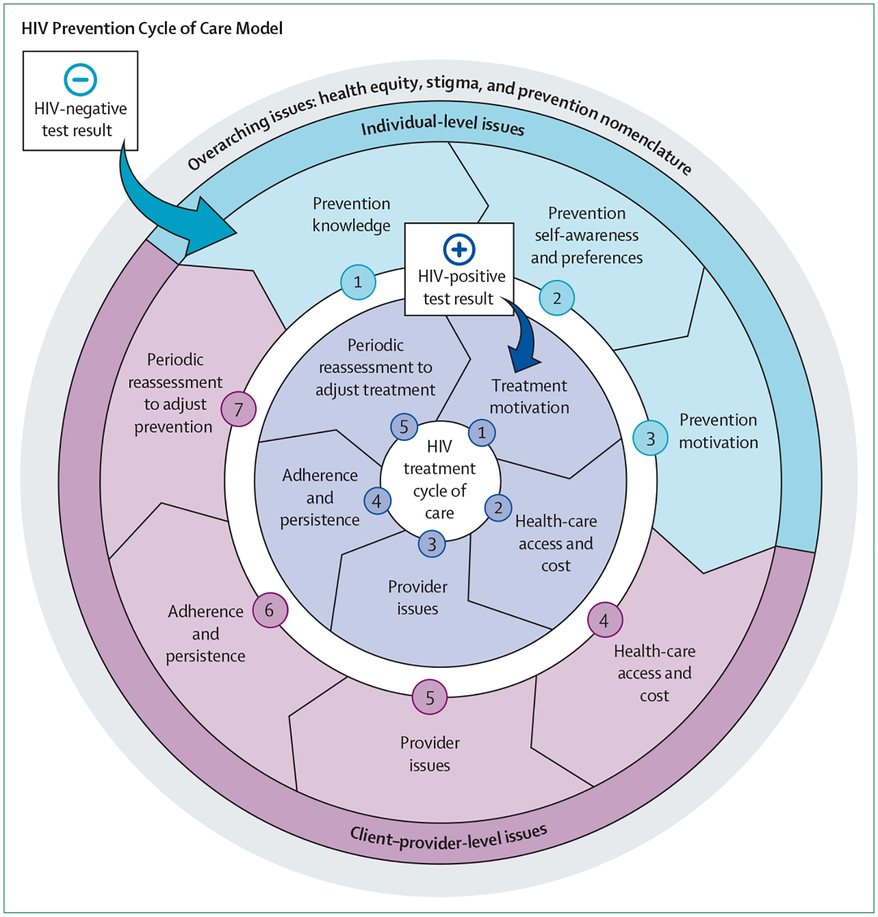 Description:Expanding on previous work, we present an HIV Prevention Cycle of Care model to facilitate understanding of the complexity of issues involved in pre-exposure prophylaxis implementation for gay, bisexual, and other men who have sex with men (MSM) in the USA, including individual, client-provider, and overarching issues such as health equity, stigma, and prevention nomenclature. The HIV prevention cycle of care applies to MSM who test negative for HIV. The Prevention Cycle of Care model includes seven steps: prevention knowledge, prevention self-awareness and preferences, prevention motivation, health-care access and cost, provider issues, adherence and persistence, and periodic reassessment and adjustment. HIV prevention is complex in an era of emerging multiple modalities, and more research is needed to successfully implement pre-exposure prophylaxis options over time and across diverse communities of MSM who are sexually active.