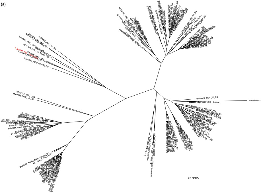 The public health investigation of this case was conducted by the Centers for Disease Control, the Illinois Department of Health and the Illinois Department of Agriculture, in collaboration with a local veterinary clinic and several academic and federal diagnostic laboratories. It included an extensive diagnostic evaluation of the dam and aborted foetuses to confirm a diagnosis of canine brucellosis. Passengers, airline personnel and staff from the veterinary clinic where the dogs were treated underwent risk assessments, and clinic staff also received detailed guidance regarding infection prevention practices.