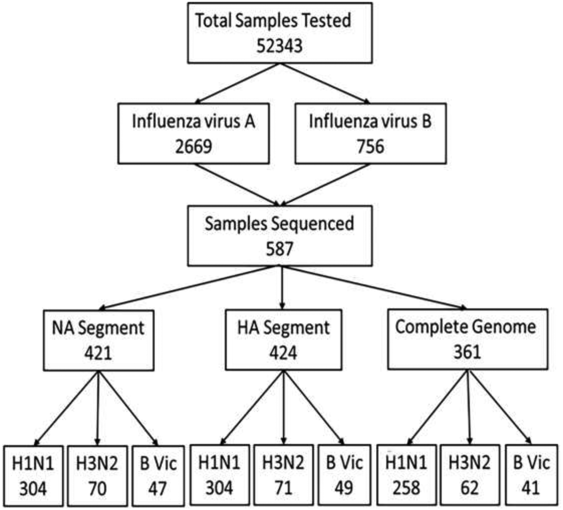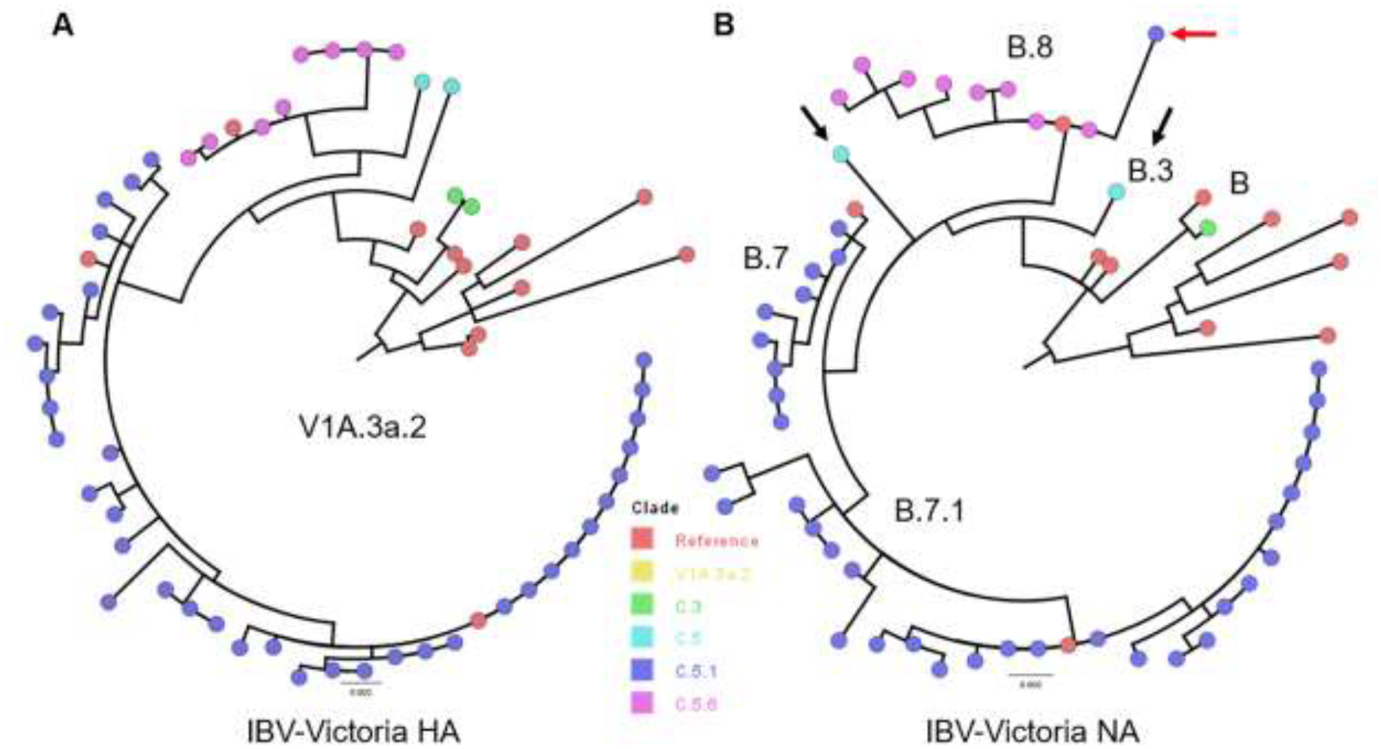 Description:Influenza, a human disease caused by viruses in the Orthomyxoviridae family, is estimated to infect 5% -10 % of adults and 20% -30 % of children annually. Influenza A (IAV) and Influenza B (IBV) viruses accumulate amino acid substitutions (AAS) in the hemagglutinin (HA) and neuraminidase (NA) proteins seasonally. These changes, as well as the dominating viral subtypes, vary depending on geographical location, which may impact disease prevalence and the severity of the season. Genomic surveillance is crucial for capturing circulation patterns and characterizing AAS that may affect disease outcomes, vaccine efficacy, or antiviral drug activities. In this study, whole-genome sequencing of IAV and IBV was attempted on positive remnant clinical samples (587) collected from 580 patients between June 2023 and February 2024 in the Johns Hopkins Health System (JHHS). Full-length HA segments were obtained from 424 (72.2 %) samples. H1N1pdm09 (71.7 %) was the predominant IAV subtype, followed by H3N2 (16.7 %) and IBV-Victoria clade V1A.3a.2 (11.6 %). Within H1N1pdm09 HA sequences, the 6B1A.5a.2a.1 (60.5 %) clade was the most represented. Full-length NA segments were obtained from 421 (71.7 %) samples. Within H1N1pdm09 and IBV, AAS previously proposed to change susceptibility to NA inhibitors were infrequently detected. Phylogeny of HA and NA demonstrated heterogeneous HA and NA H1N1pdm09 and IBV subclades. No significant differences were observed in admission rates or use of supplemental oxygen between different subtypes or clades. Influenza virus genomic surveillance is essential for understanding the seasonal evolution of influenza viruses and their association with disease prevalence and outcomes.
