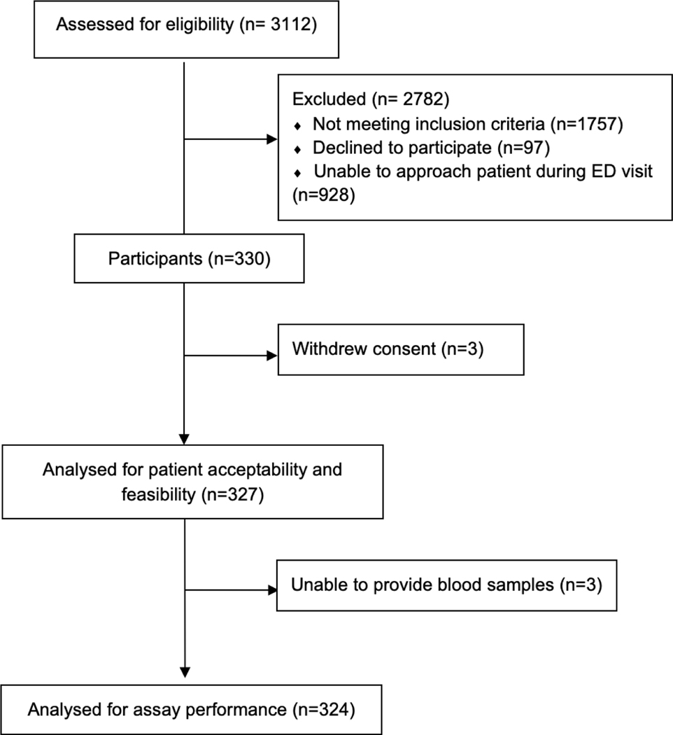 The Chembio DPP® HIV-Syphilis POC assay had excellent performance characteristics when evaluated in an ED population, as well as high perceived acceptability from patients, and feasibility for ED use from clinical technicians. The test may have utility for HIV-syphilis screening among high-risk ED patients.