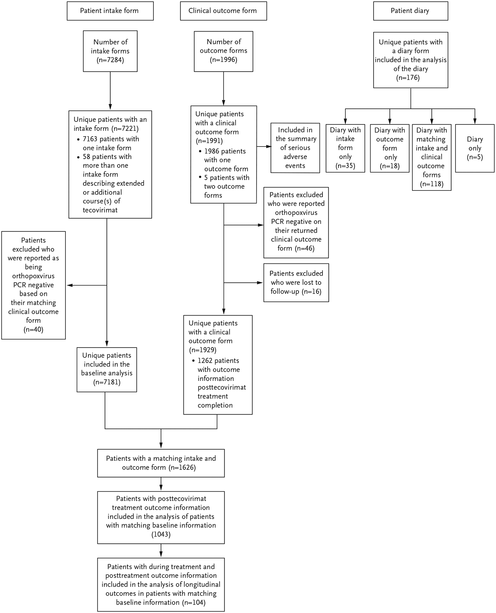 We evaluated data from patients prescribed tecovirimat from May 29, 2022, through July 10, 2023. Baseline patient characteristics, clinical courses, and outcomes were evaluated via intake forms, outcome forms, and patient diaries. Data were summarized in aggregate by human immunodeficiency virus (HIV) status and by comorbidities of special interest. Reported SAEs were also compiled.