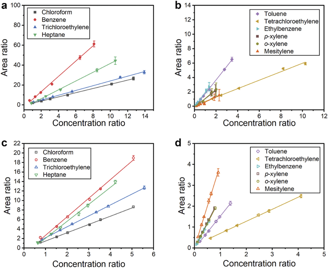 Description:Determining worker exposure to hazardous volatile organic compounds (VOCs) in air at levels exceeding the Permissible Exposure Limits and Recommended Exposure Limits established by the U.S. federal agencies of Occupational Safety and Health Administration (OSHA) and the National Institute for Occupational Safety and Health (NIOSH), respectively, will continue to be an important part of environmental and occupational health risk assessments. The purpose of this work was to develop a reliable analytical method for rapid and on-site assessments of occupational VOC exposures using field-capable thermal desorption-gas chromatography-mass spectrometry (TD-GC-MS) instrumentation (i.e. the HAPSITE| ER). The experiments involved in this study included determining TD-GC-MS parameters suitable for efficient analyte separation and quantitation on the HAPSITE| ER, determinations of analyte mass loadings that cause mass spectrometer detector saturations, generation of calibration curves, estimations of the limits of detection (LODs) and quantification (LOQs), as well as desorption efficiency and relative response factor repeatability. The LODs using Carbopack| B and Tenax| TA sampling media were estimated and ranged from 0.2-1.9 ng and 0.045-0.3 ng, respectively. The LOQs using Carbopack| B and Tenax TA sampling media were estimated and ranged from 1.0-6.3 ng and 0.2-1.1 ng, respectively. We have developed a reliable analytical method for chloroform, benzene, trichloroethylene, and heptane using field-portable HAPSITE| ER instrumentation and Tenax| TA sorbent media. Reliable and accurate methods were developed for chloroform and trichloroethylene using Carbopack| B sorbent media, however, this particular sorbent hadlow desorption efficiency and insufficient repeatability in relative response factors for many analytes. Our current and ongoing work in determining the uptake rates for analytes on Tenax| TA sorbent media will make the methods described herein applicable for on-site occupational VOC exposure assessments of chloroform, benzene, trichloroethylene, and heptane using either passive or active air sampling techniques.