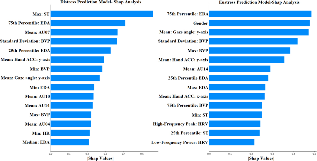 Description:Previous studies have solely focused on establishing Machine Learning (ML) models for automated detection of stress arousal. However, these studies do not recognize stress appraisal and presume stress is a negative mental state. Yet, stress can be classified according to its influence on individuals; the way people perceive a stressor determines whether the stress reaction is considered as eustress (positive stress) or distress (negative stress). Thus, this study aims to assess the potential of using an ML approach to determine stress appraisal and identify eustress and distress instances using physiological and behavioral features. The results indicate that distress leads to higher perceived stress arousal compared to eustress. An XGBoost model that combined physiological and behavioral features using a 30 second time window had 83.38% and 78.79% F|-scores for predicting eustress and distress, respectively. Gender-based models resulted in an average increase of 2-4% in eustress and distress prediction accuracy. Finally, a model to predict the simultaneous assessment of eustress and distress, distinguishing between pure eustress, pure distress, eustress-distress coexistence, and the absence of stress achieved a moderate F|-score of 65.12%. The results of this study lay the foundation for work management interventions to maximize eustress and minimize distress in the workplace.