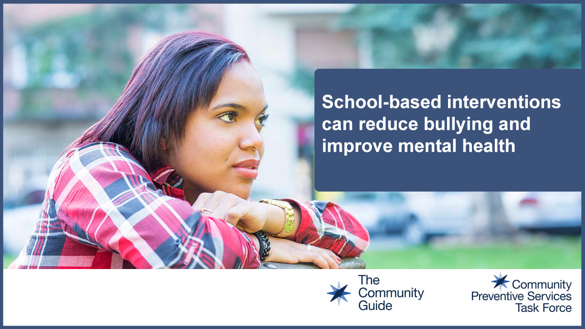 Description:The Community Preventive Services Task Force (CPSTF) findings and recommendations for "Violence Prevention: School-based Anti-bullying Interventions" are based on systematic reviews of evidence of effectiveness and economic impact. All CPSTF findings and recommendations were originally published in The Community Guide.