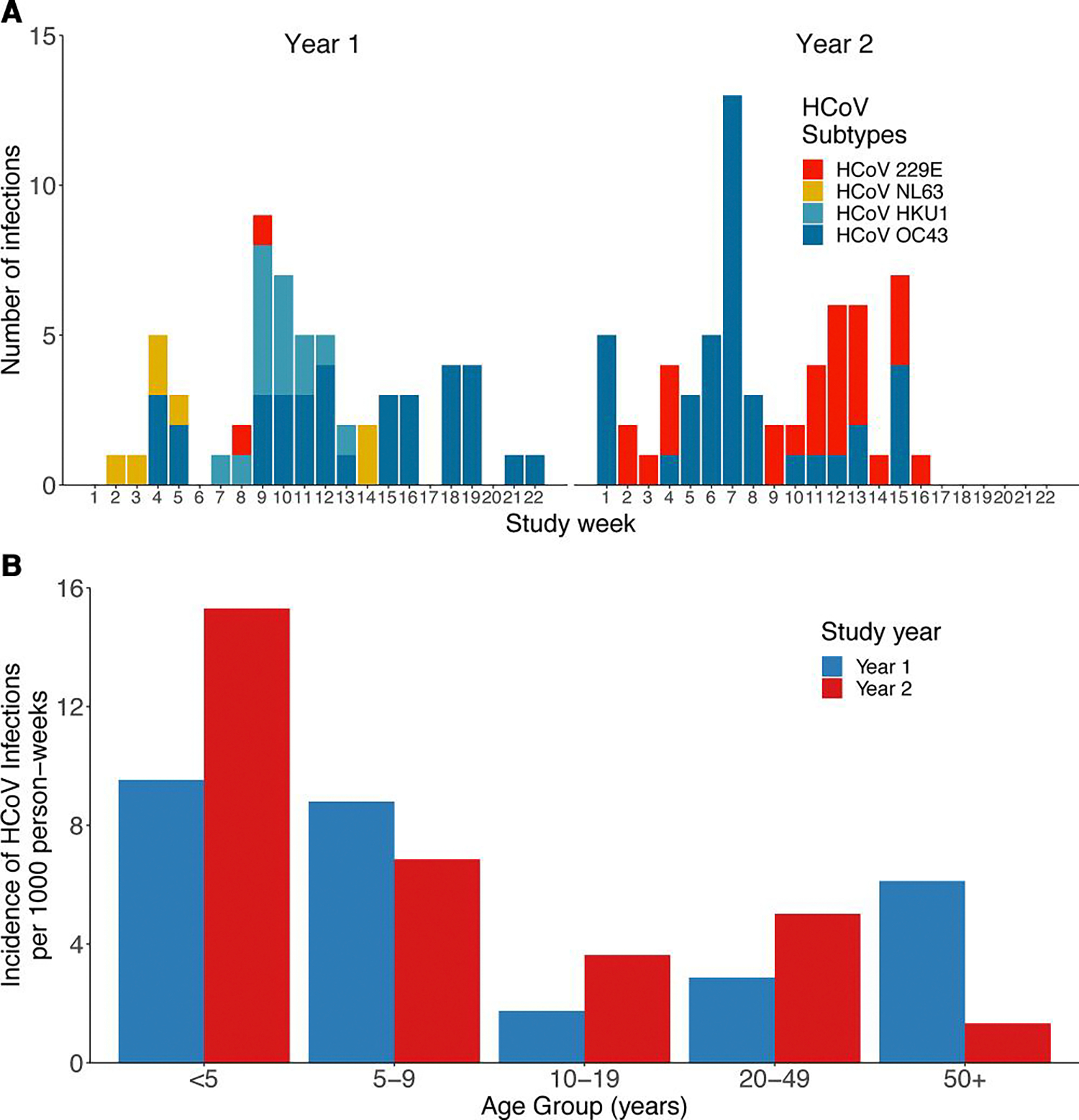 Household transmission studies inform how viruses spread among close contacts, but few characterize household transmission of endemic coronaviruses.