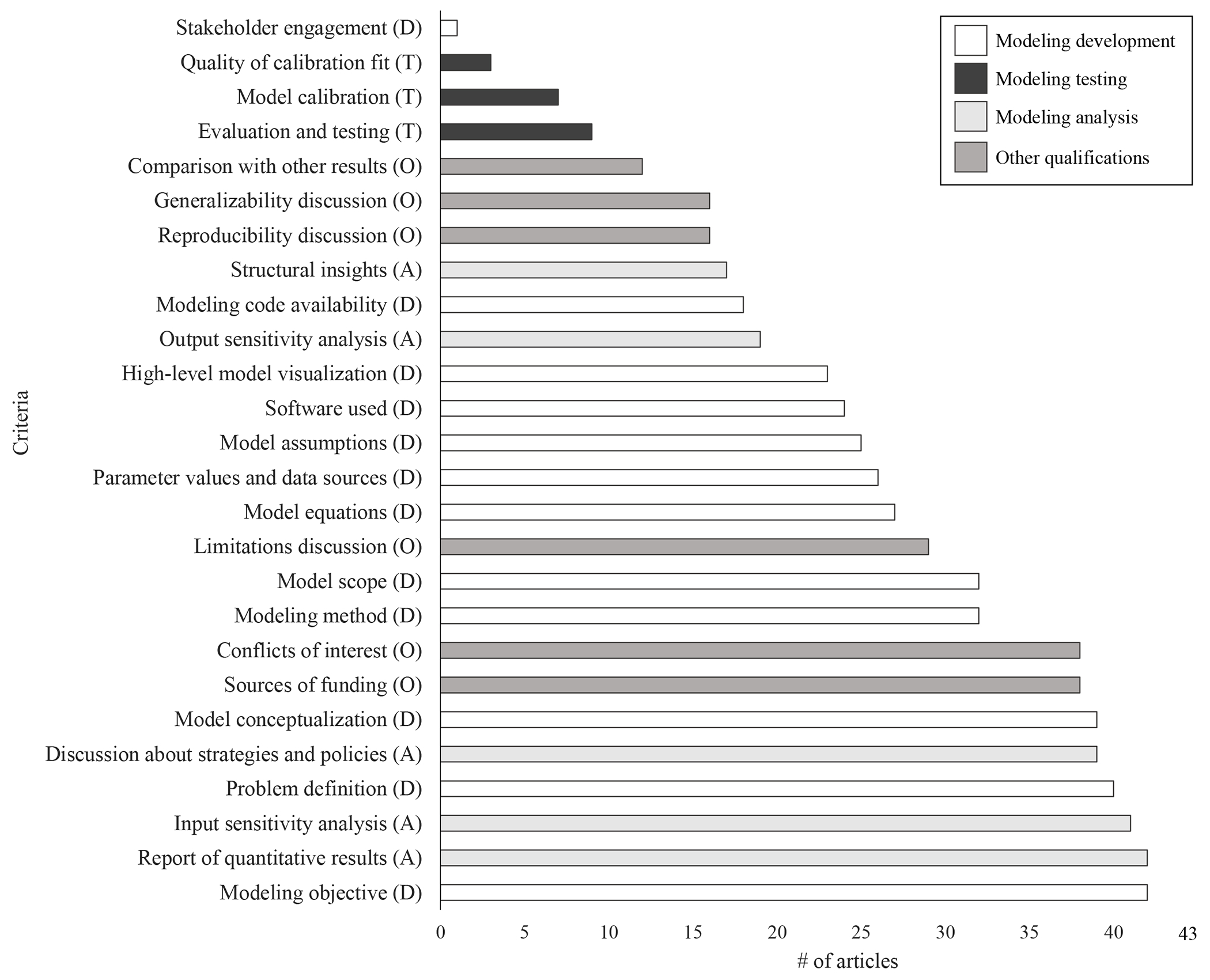 We examined 43 articles published from December 2019 through September 2022 that used modeling to evaluate travel-related COVID-19 containment strategies. We extracted and synthesized data regarding study objectives, methods, outcomes, populations, settings, strategies, and costs. We used a standardized approach to evaluate each analysis according to 26 criteria for modeling quality and rigor.